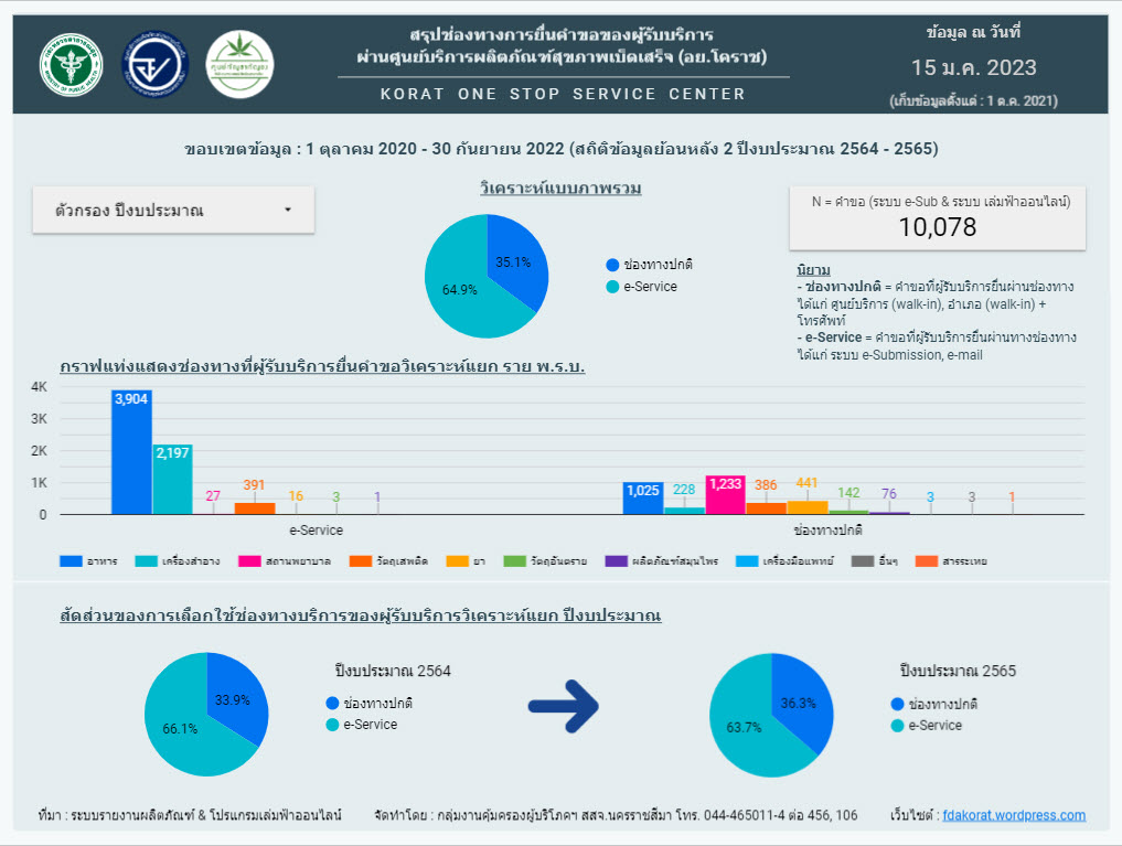 สรุปการใช้บริการผ่านช่องทาง e-Service, ความทันเวลา, และความพึงพอใจระดับมากที่สุดของผู้รับบริการ