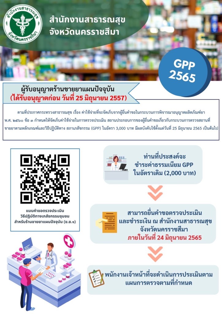 📌และในปี 2565 ร้านขายยาที่ได้รับอนุญาตก่อนวันที่ 25 มิถุนายน 2557 ซึ่งครบกำหนด 8 ปี ที่กฎหมายประกาศ ต้องผ่านการประเมิน GPP ขั้นที่ 3 (full GPP) และจะต้องประเมินซ้ำทุกๆ 2 ปี ไปเรื่อยๆ ดังนั้นร้านยาจะมีค่าธรรมเนียม GPP ปีเว้นปี