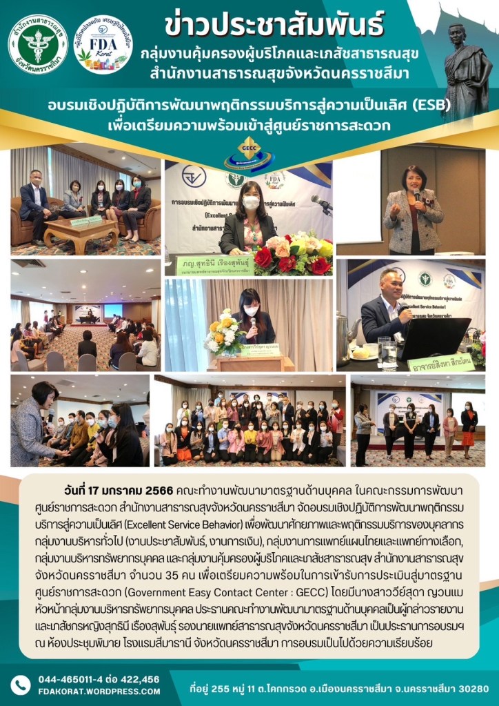 อบรมเชิงปฏิบัติการพัฒนาพฤติกรรมบริการสู่ความเป็นเลิศ (Excellent Service behavior : ESB) มกราคม 18, 2023 แบ่งปันสิ่งนี้: แชร์บน X(เปิดในหน้าต่างใหม่) X แชร์บน Facebook(เปิดในหน้าต่างใหม่) เฟซบุ๊ค ถูกใจ กำลังโหลด... เผยแพร่โดย กลุ่มงานคุ้มครองผู้บริโภคฯ สสจ.นครราชสีมา ดูเรื่องทั้งหมดโดย กลุ่มงานคุ้มครองผู้บริโภคฯ สสจ.นครราชสีมา