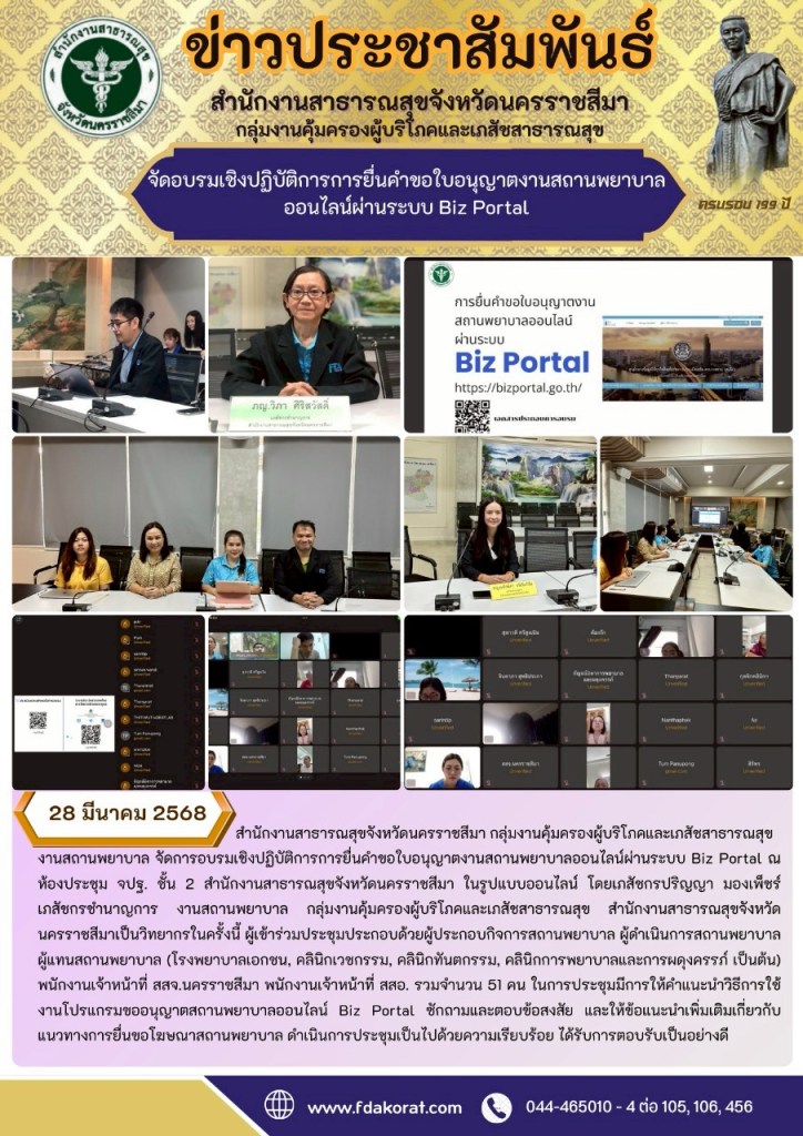 สำนักงานสาธารณสุขจังหวัดนครราชสีมา (One Stop Service Center : OSSC) บริการให้คำแนะนำและดำเนินการออกใบอนุญาตเกี่ยวกับผลิตภัณฑ์สุขภาพ ได้แก่ ยา, อาหาร, เครื่องสำอาง, เครื่องมือแพทย์, วัตถุอันตราย, วัตถุเสพติด, สารระเหย, ผลิตภัณฑ์สมุนไพร และสถานพยาบาล