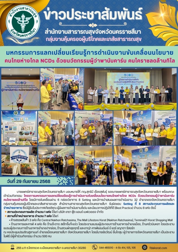 สำนักงานสาธารณสุขจังหวัดนครราชสีมา (One Stop Service Center : OSSC) บริการให้คำแนะนำและดำเนินการออกใบอนุญาตเกี่ยวกับผลิตภัณฑ์สุขภาพ ได้แก่ ยา, อาหาร, เครื่องสำอาง, เครื่องมือแพทย์, วัตถุอันตราย, วัตถุเสพติด, สารระเหย, ผลิตภัณฑ์สมุนไพร และสถานพยาบาล