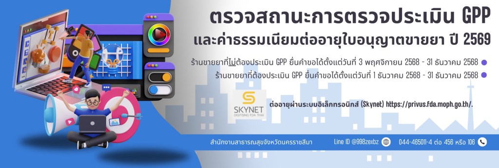 ต่ออายุใบอนุญาตยา การต่ออายุใบอนุญาตเกี่ยวกับยาประจำปี 2569 หนังสือแจ้งต่ออายุร้านยา 69 แบบ ขย.14 คำรับรอง (หน้า1-3) คู่มือการยื่นคำขอต่ออายุ 2569 วิดีโอวิธีการยื่นคำขอต่ออายุ https://drug.fda.moph.go.th/media.php?id=682779338873118720&name=video_renewal_licensing2568V1_04102568.mp4 เช็คสถานะร้านขายยา GPP LINK : script.google.com/macros/s/AKfycbxHDOSdVL2H7zYJXjIFOSWdeZDTA3EfPI5TMgGqyE2eKrpVzfhDz3UT2DScKwlnkTUCEg/exec แบ่งปันสิ่งนี้: แชร์บน X(เปิดในหน้าต่างใหม่) X แชร์บน Facebook(เปิดในหน้าต่างใหม่) เฟซบุ๊ค ถูกใจ กำลังโหลด...