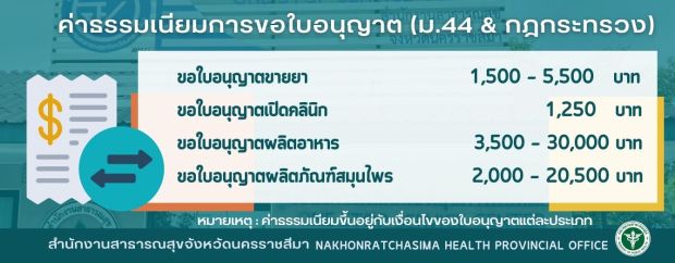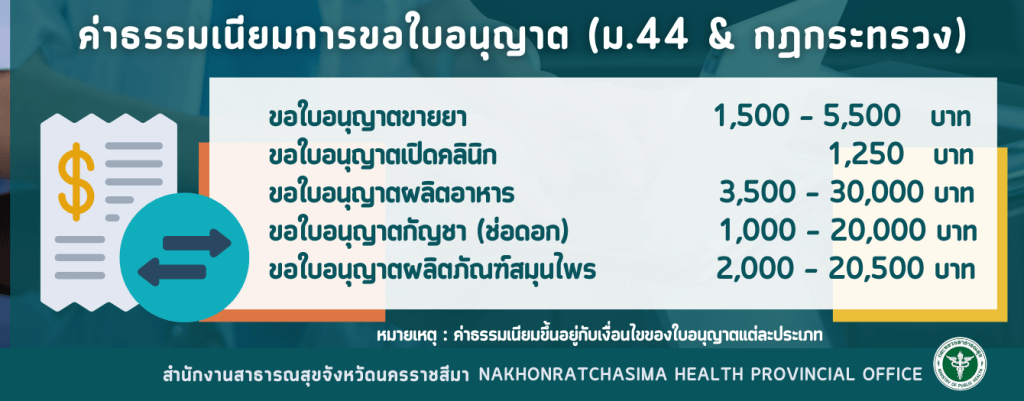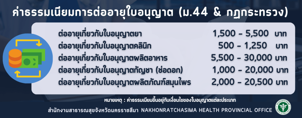 * ค่าธรรมเนียมขึ้นอยู่กับเงื่อนไขของใบอนุญาตแต่ละประเภท