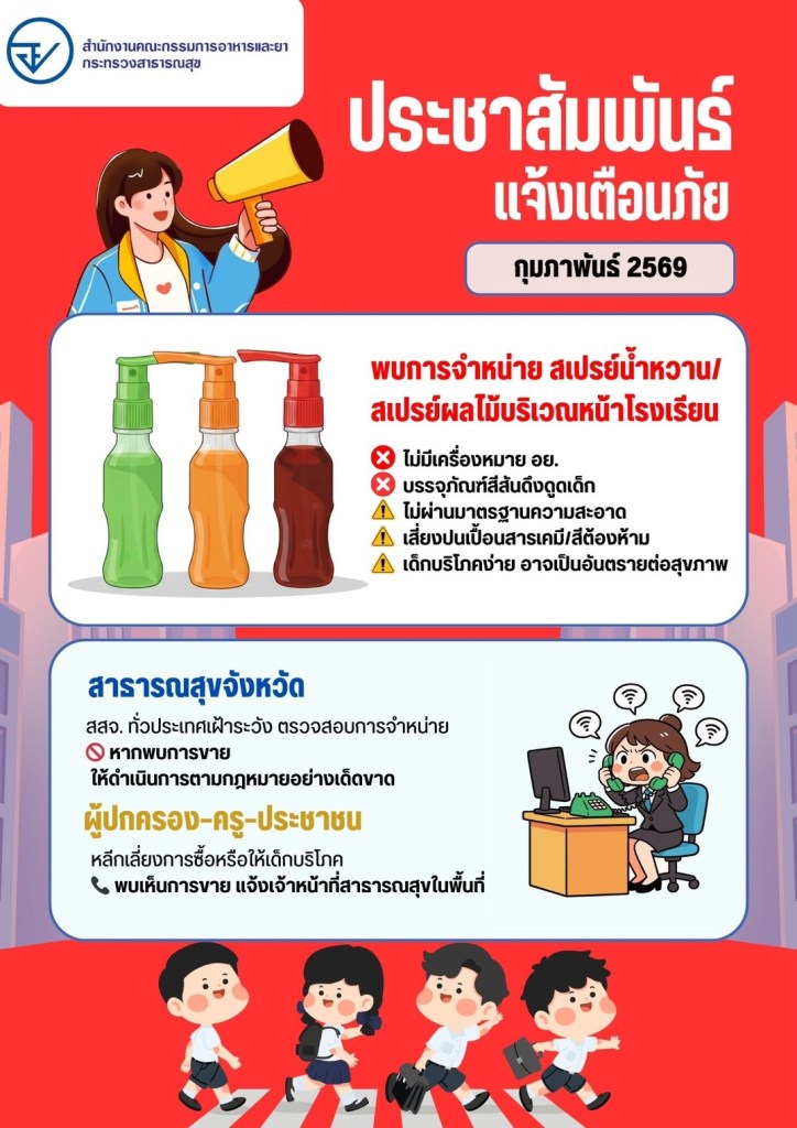 แจ้งเตือนภัยผู้บริโภค ระวัง! ผลิตภัณฑ์อาหารเสี่ยงอันตราย ไม่ได้รับอนุญาตจากกระทรวงสาธารณสุข พบเห็นการจำหน่าย โปรดแจ้ง : 044-465011 ต่อ 456 (ศูนย์บริการฯ)